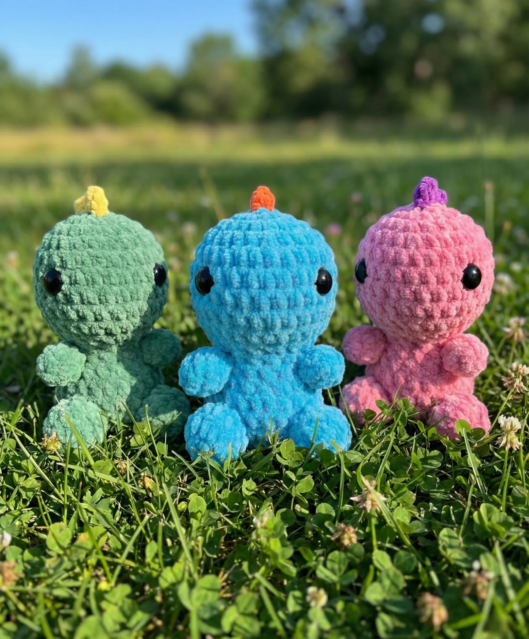 Feel free to experiment with any yarn and hook combination, but keep in mind that your finished dinosaur’s size and proportions may vary accordingly.